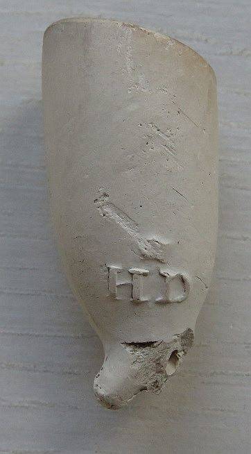 Kleipijp (lade13FM128) Onder aan de hiel een onduidelijk tekentje