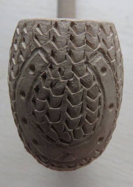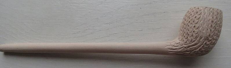 Kleipijp (lade19FM32) Billiard ketel. Ondergrond V vormige lijntjes en golf lijnen.