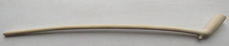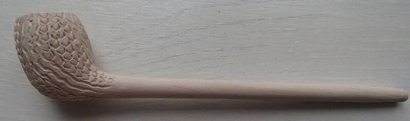 Kleipijp (lade19FM34) Hand gevormd hoge cilinder ketel met hiel en bijna rechte steel. Steellengte 40 cm.