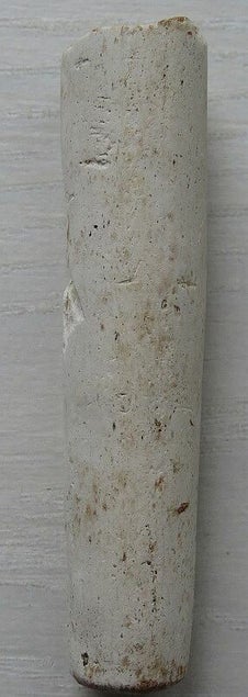 Pijpensteel (lade1FMgeennummer) lengte 7,3 cm, diameter 1,1 cm en rookopening 0,4 cm. 1630 - 1650. Waarschijnlijk Amsterdam