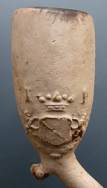 Kleipijp (Lade61FM157) Trechter. Stukje pijpensteel bewerkt met roosjes. Zie de pijp hierboven.
