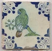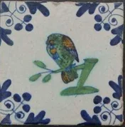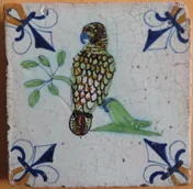 Tegel met papegaai. Grootformaat. Afkomstig uit het woonhuis van Willem Verswaen