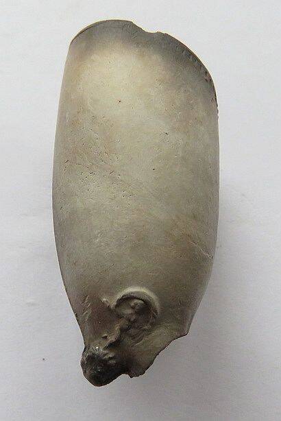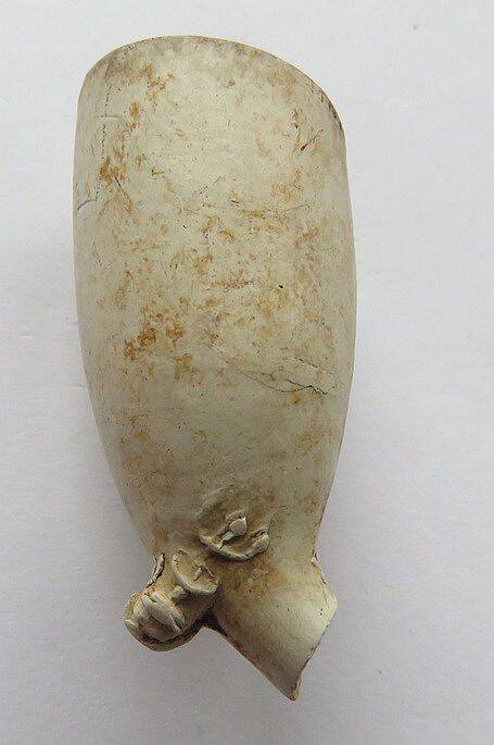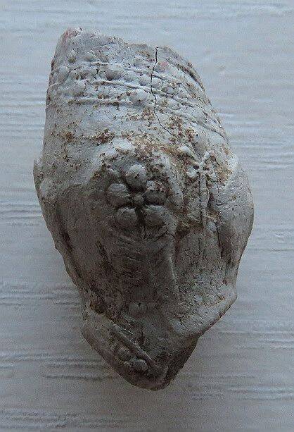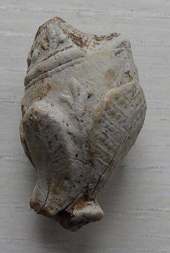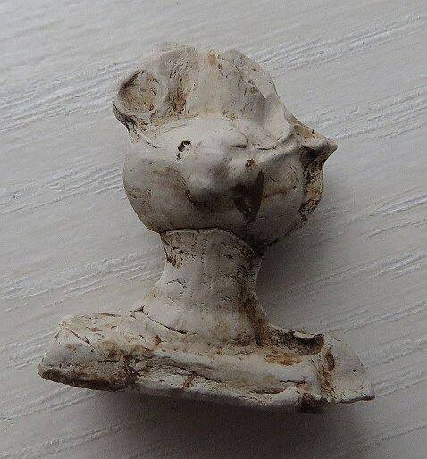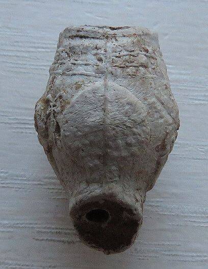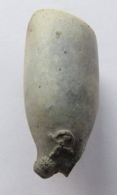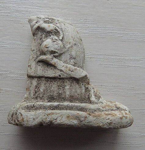 Pijpaarde beeldje met de voorstelling van een grote vaas. Hoogte ca. 2,5 cm.