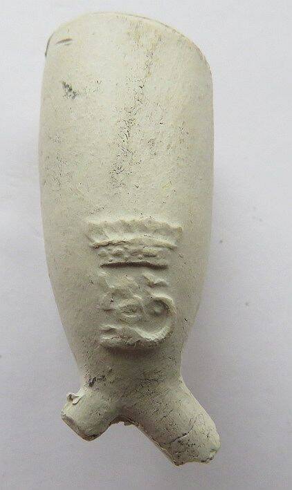 1748. Hielmerk: L gekroond. Pijpenmaker: Frans Verzijl. Vindplaats: Reeuwijk/omgeving.