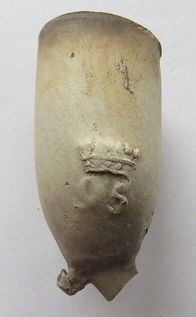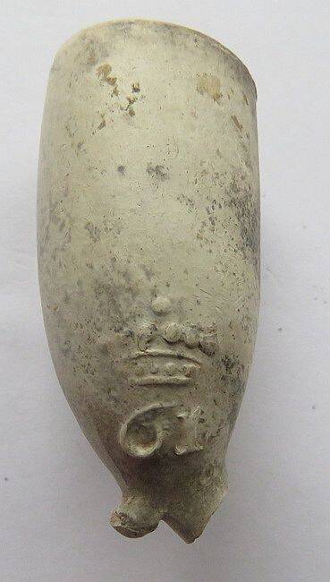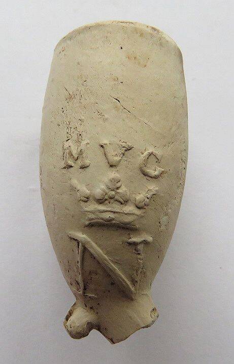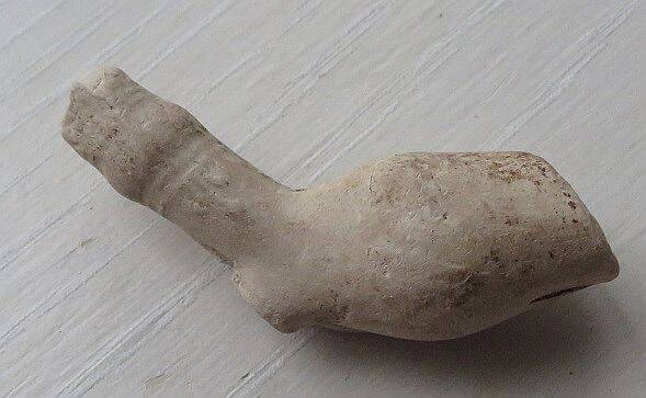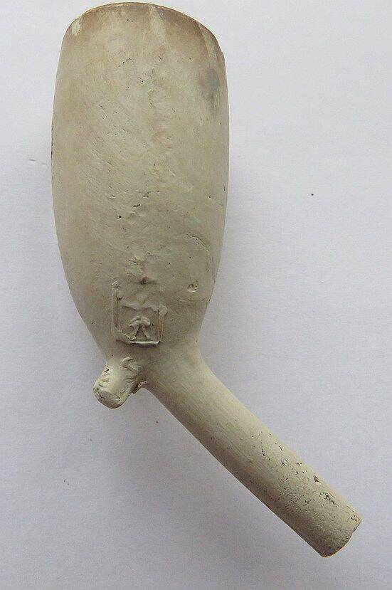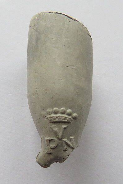 Zeldzame kleipijp uit het midden van de 17e eeuw met een vergrote hiel. Bodemvondst omgeving Gouda.