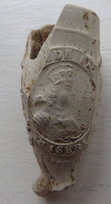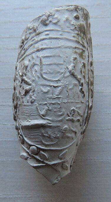 Mooi barokpijpje met tudorroos versiering. Omstreeks 1625-1640..