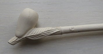 Kleipijp doorroker afwijkend type in wit van het manchettype. De pijp is gaaf. Datering: 2e helft 20e eeuw.