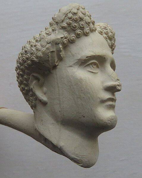 Complete en gave kleipijp met de voorstelling van een manspersoon. Oude fabrieksvoorraad.